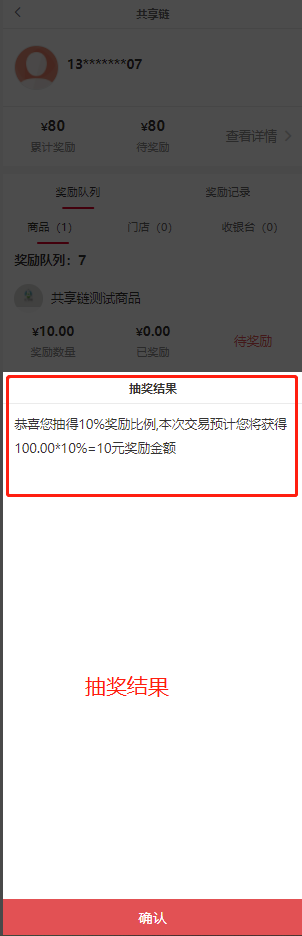 会员前端共享链界面,可点击抽奖功能抽取其他待返奖励比列。