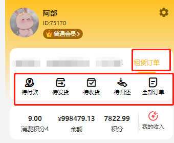 下单后在会员中心订单列表--租赁订单处查看订单